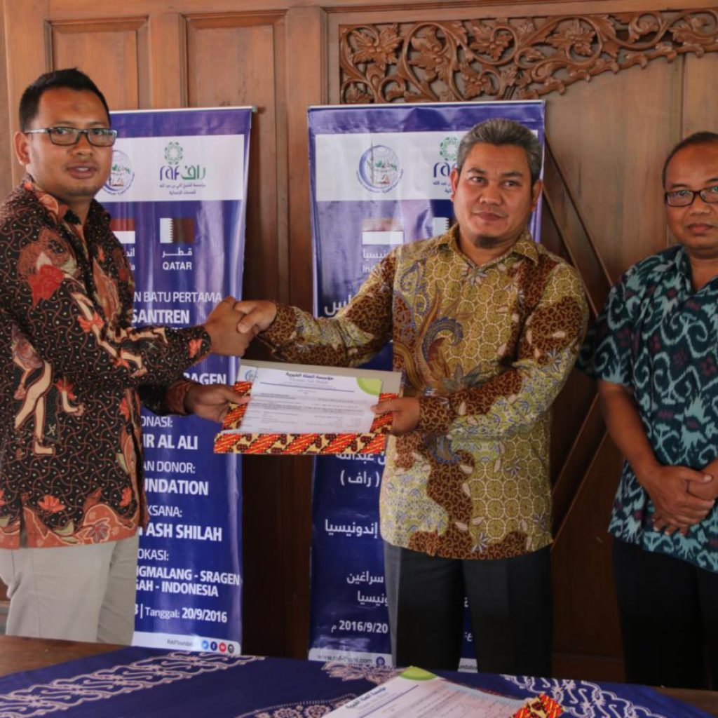 Peletakan batu pertama pembangunan sekolah ini telah dilakukan Wakil Bupati Sragen, Dedy Endriyatno pada Selasa (20/9), kemudian dilanjutkan dengan penandatanganan MoU antara Yayasan Ashilah dengan LAZKU selaku pelaksana program. Wakil Bupati Sragen Dedy Endriyatno berharap, sekolah tersebut bisa bersinergi dengan program-program pemerintah.